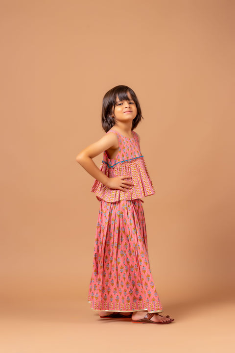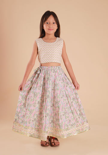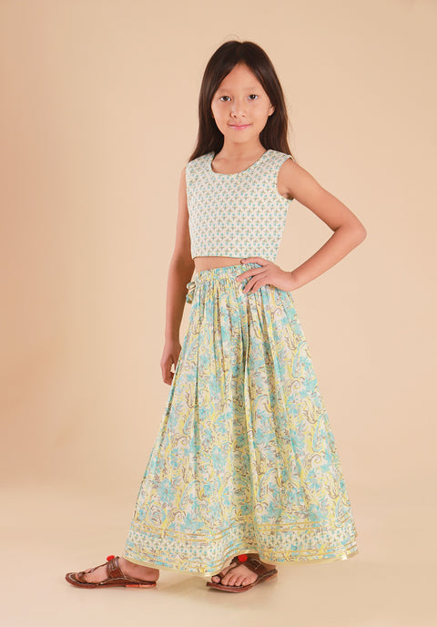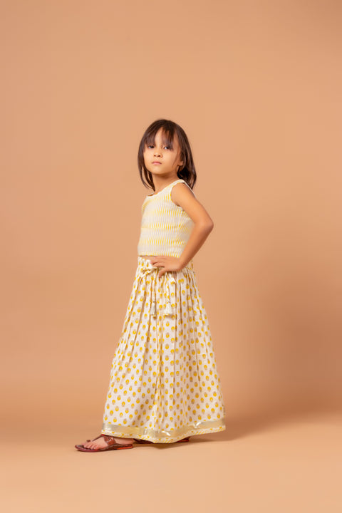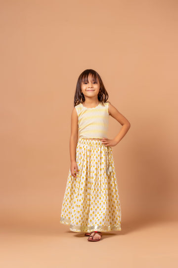 Girls Lehenga Choli Set Madhu Buti Yellow