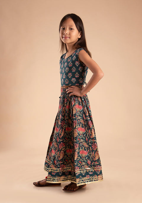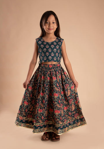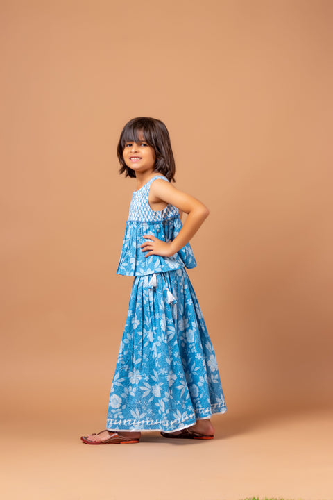 Girls Lehenga Choli Set Mandala Blue Jaal