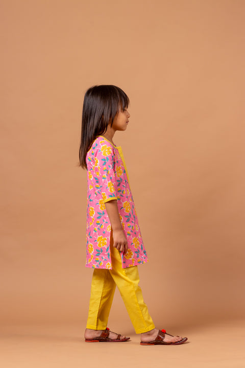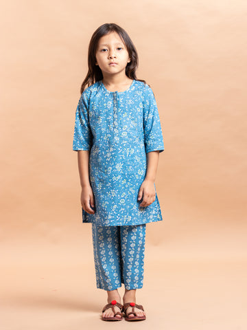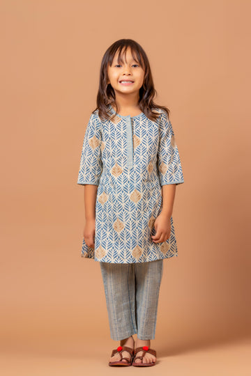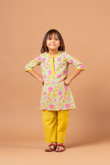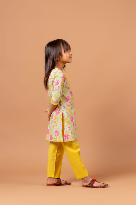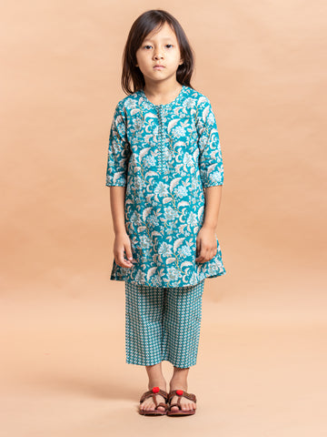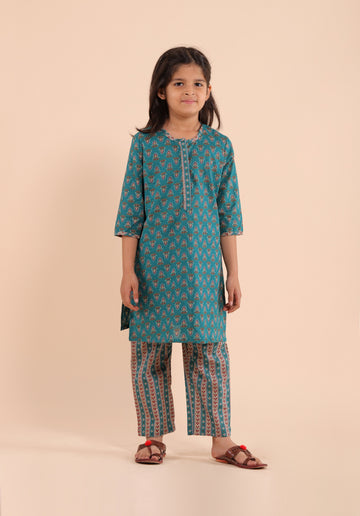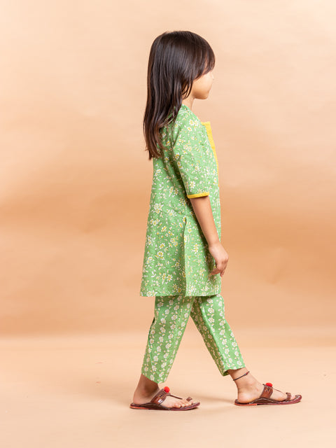 Girls Printed Kurta Set Jaal Green (Gulnar)