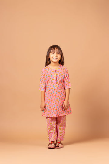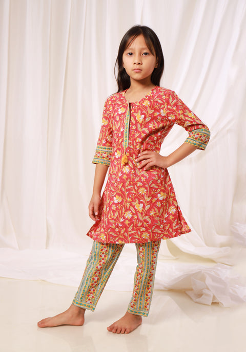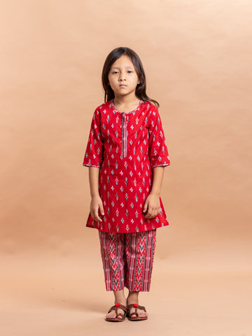 Girls Printed Kurta Set Jaal Red (Gulnar)