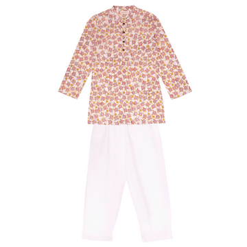 Block Printed Boy's Kurta Set Sea Turtle Print Yellow