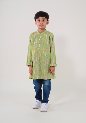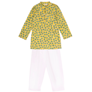 Block Printed Boy's Kurta Sea Turtle Yellow