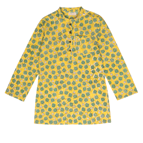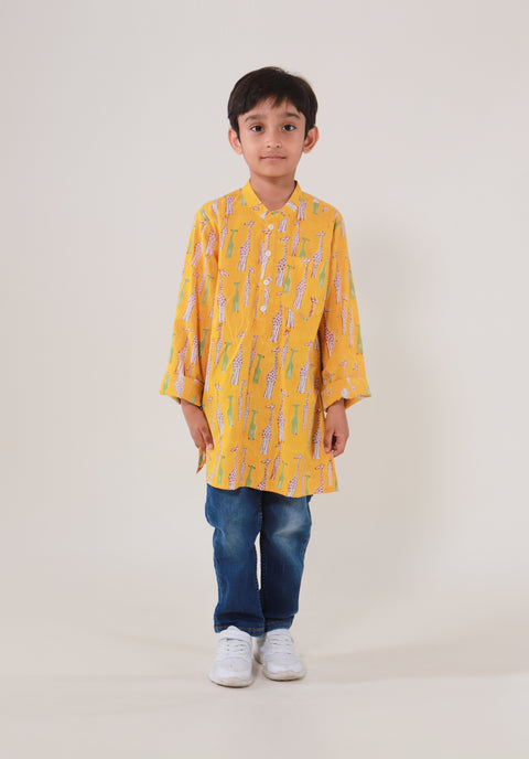 Block Printed Boy's Kurta Shirt Tortoise Yellow