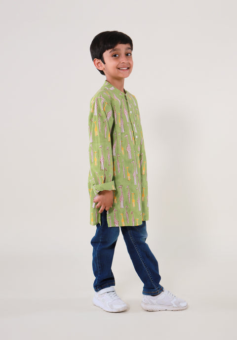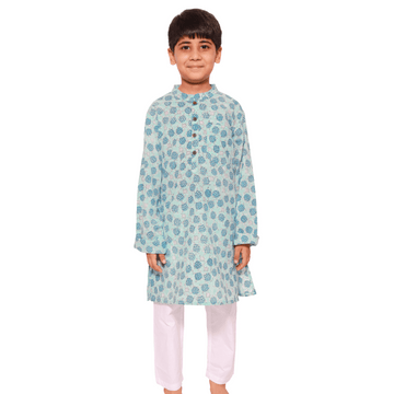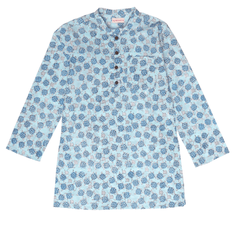 Block Printed Boy's Kurta Shirt Tortoise Blue