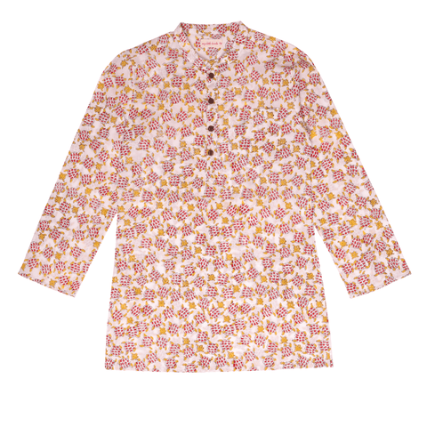 Block Printed Boy's Kurta Shirt Tortoise Red