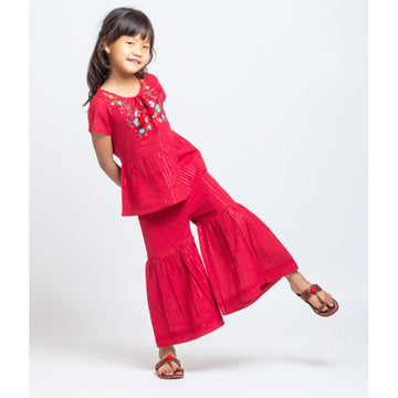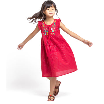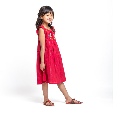 Mickey Lurex Embroidered Dress Red