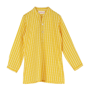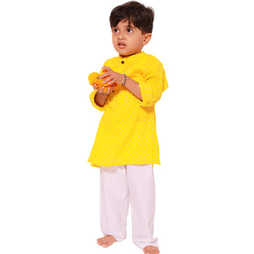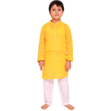 Yellow Jacquard Dobby Boy's Kurta PJ Set