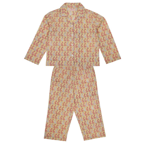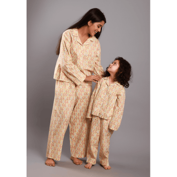 Block Printed Unisex Night Suit Set Bunny Yellow
