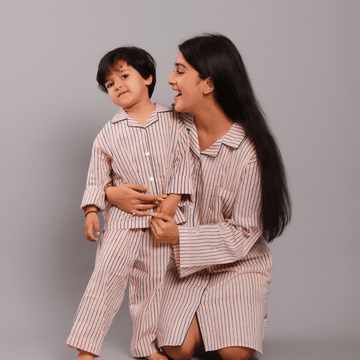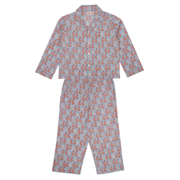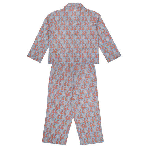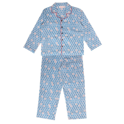 Block Printed Unisex Night Suit Set Tortoise Blue