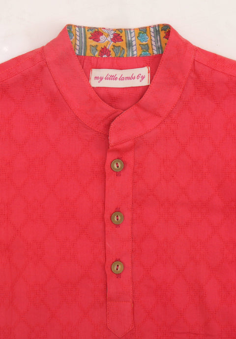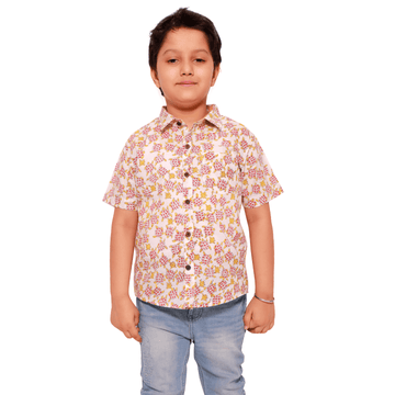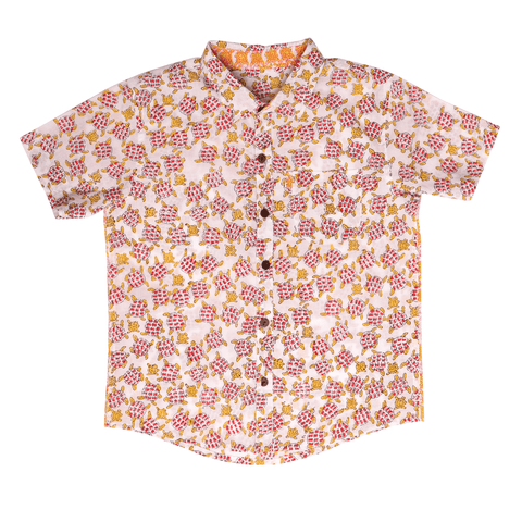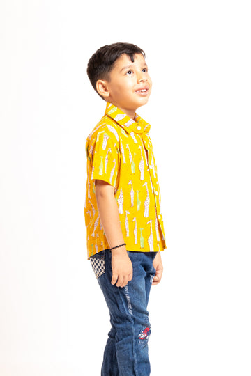 Block Printed Boy's Kurta Shirt Tortoise Yellow