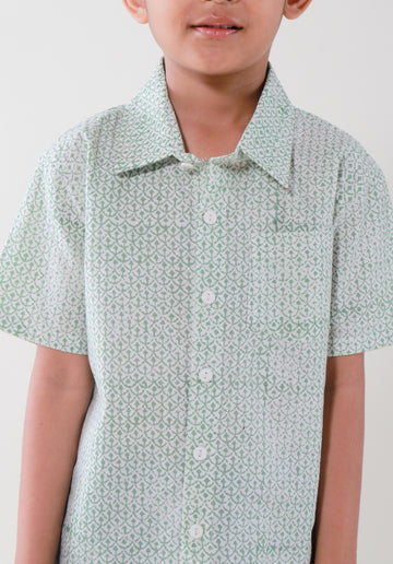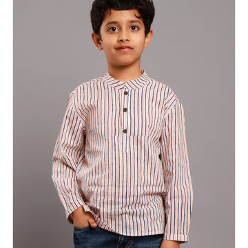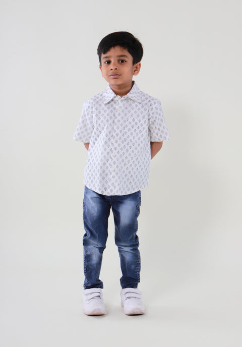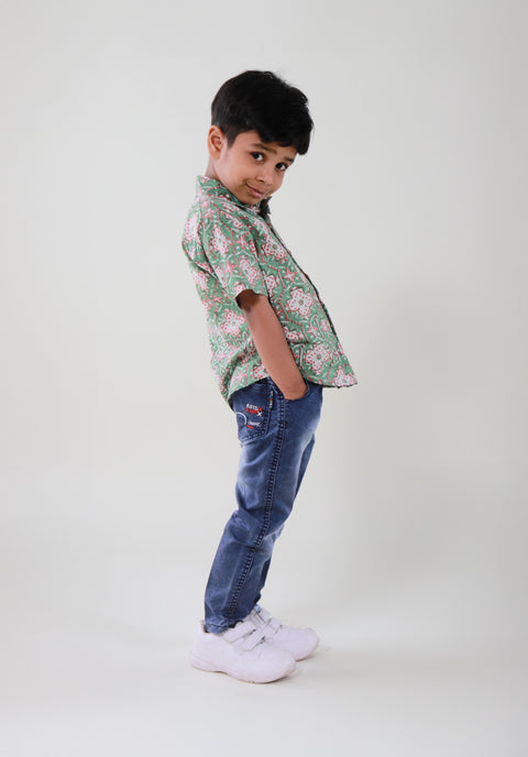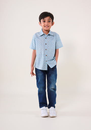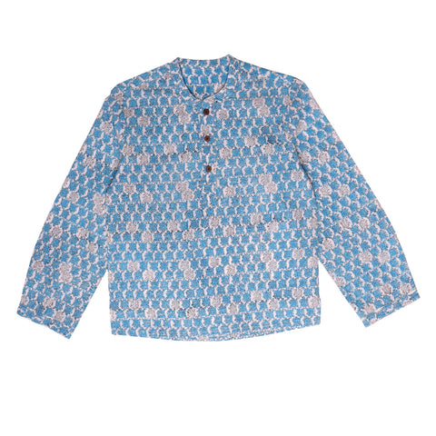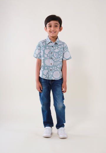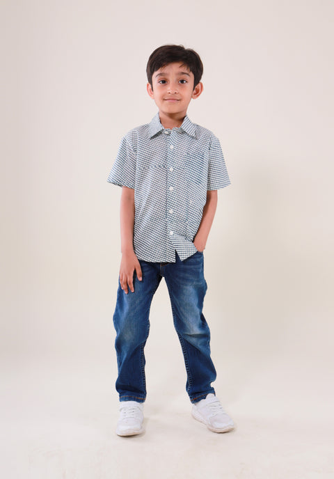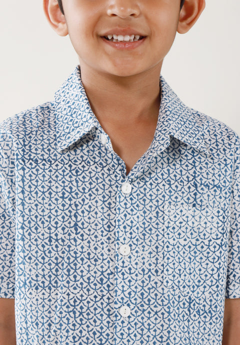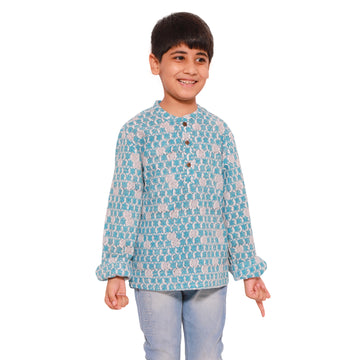 Block Printed Boy's Kurta Shirt Tortoise Blue