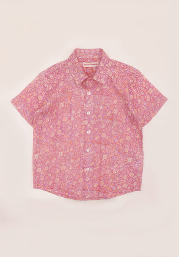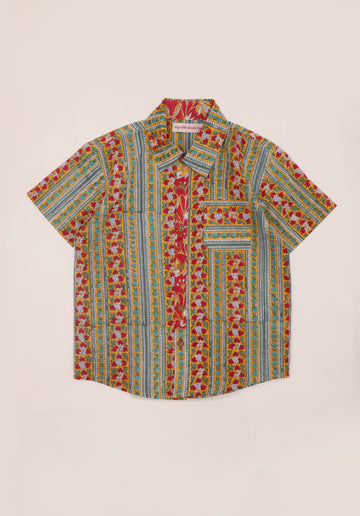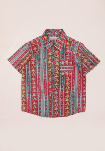 Block Printed Boy's Shirt Sea Turtle Print Red