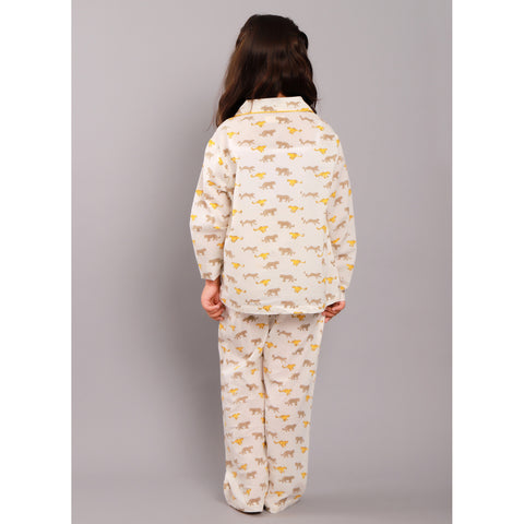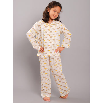 Block Printed Unisex Night Suit Set Bunny Yellow