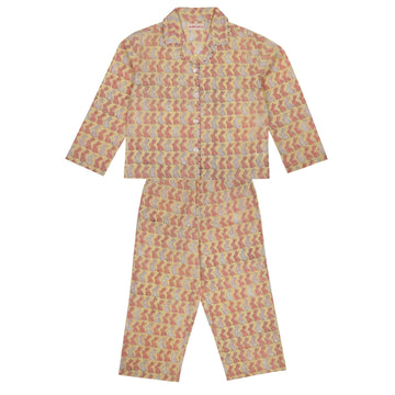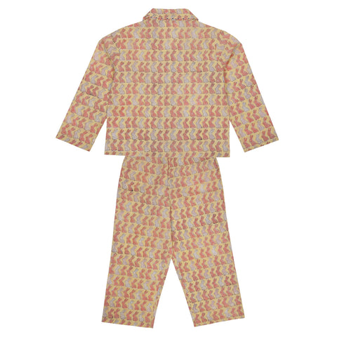 Block Printed Nightsuit Toucan Pink