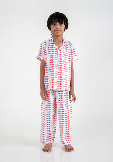 Block Printed Nightsuit Fish Coral