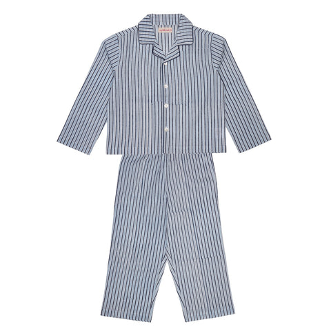 Block Printed Unisex Night Suit Set Stripes Blue