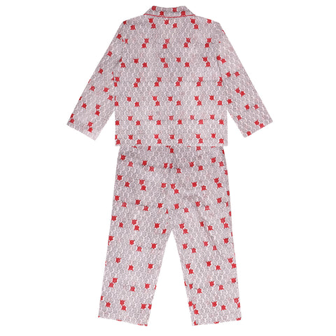 Block Printed Unisex Night Suit Set Tortoise Red