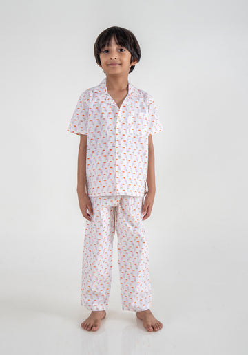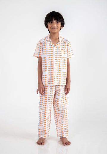 Block Printed Nightsuit Fish Orange