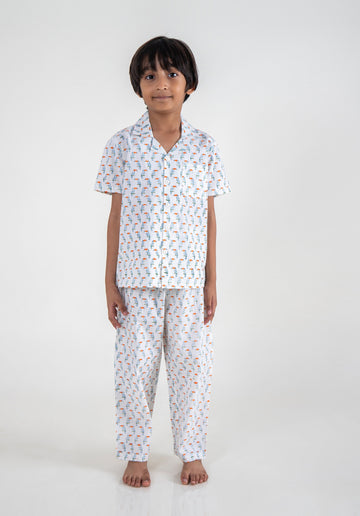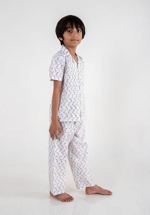 Block Printed Nightsuit Toucan Blue