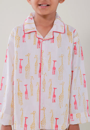 Block Printed Unisex Nightsuit set Giraffe Red
