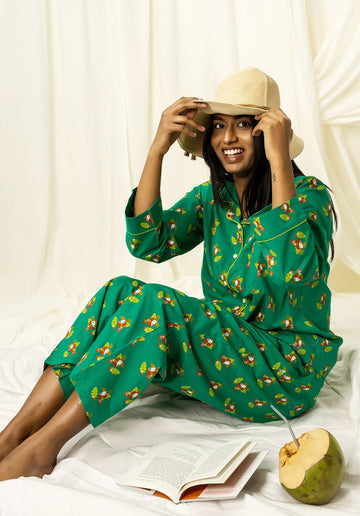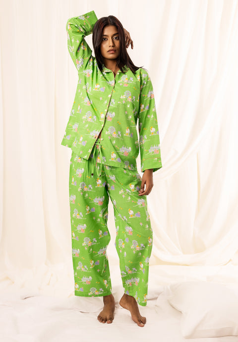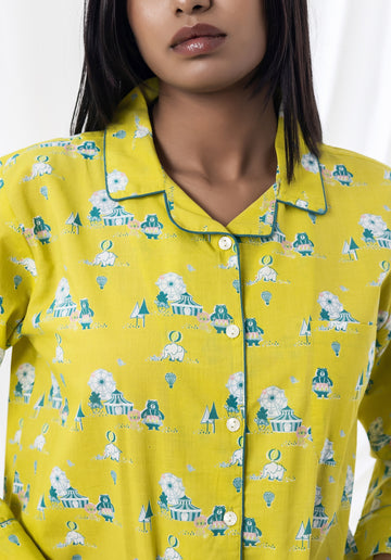 Premium cotton Women Nightsuit Lime Yellow Circus