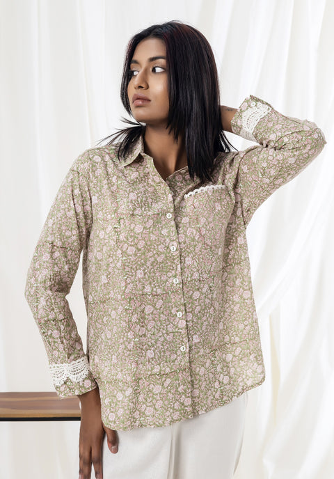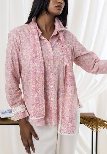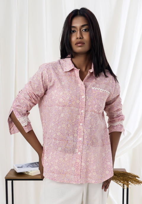 Women Block printed Piyu Oversized shirt Liberty Pink