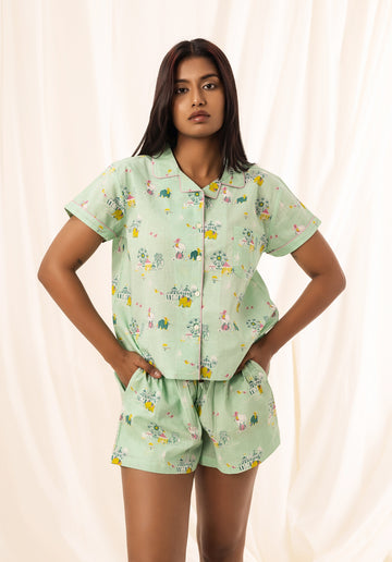 Premium cotton Women Nightsuit Shorts Mint Circus