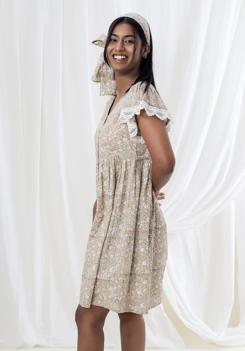 Premium cotton Women Nightsuit Shorts Luna Buti Beige