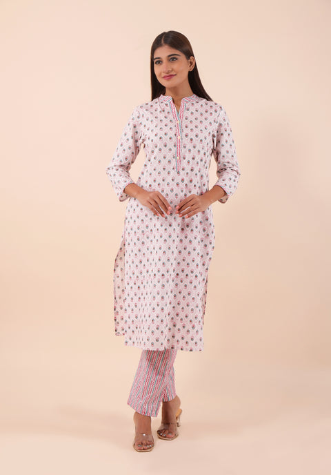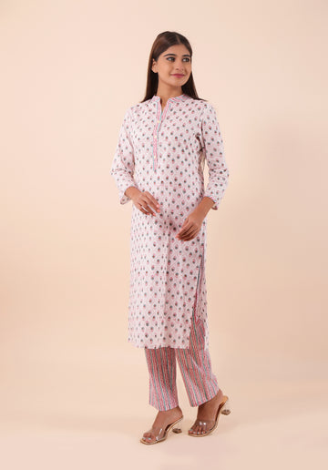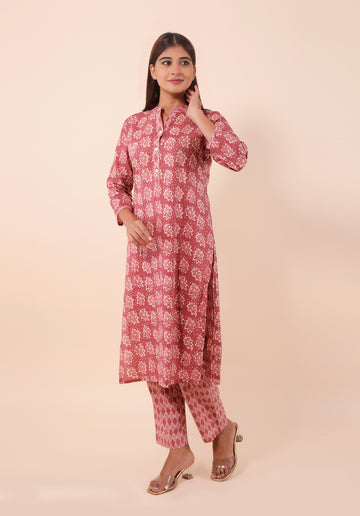 Women Kurta Set Mughal Pink