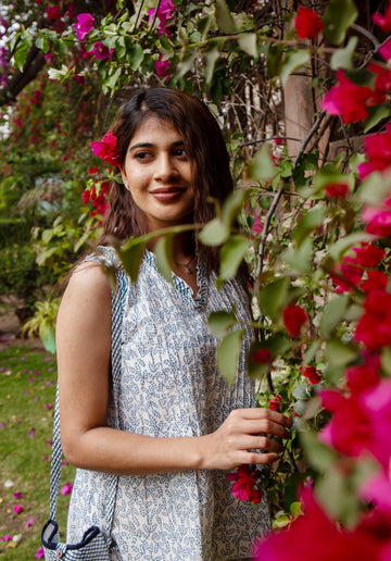 Women Printed dress Kris pin tuck ikkat kantha Blue