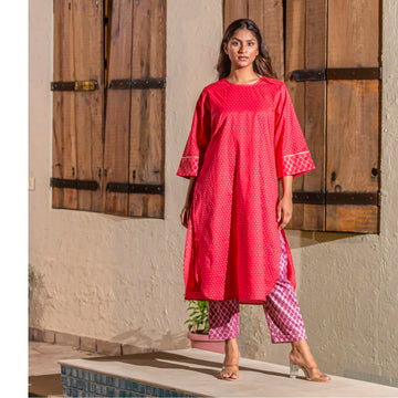 Women Jacquard Chanderi Coord Set Pink- Purple